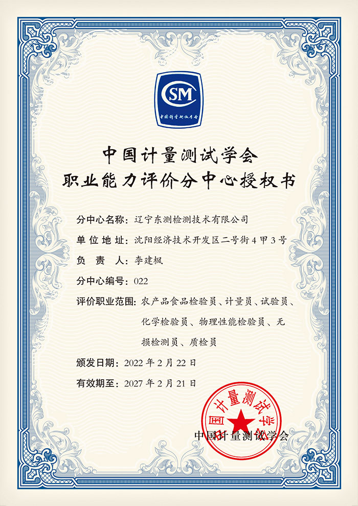 中國計量測試學會職業能力評價分中心授權書